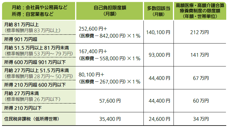 日本の健康保険制度では、所得に応じて毎月の自己負担限度額が設定されています。これにより、一定額を超えた医療費については公的保険がカバーします。